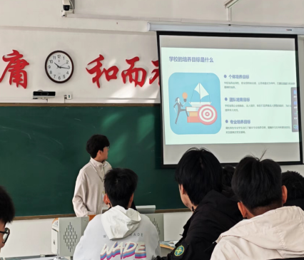 第三部分:学生发展,由寝室学长侯昊杉宣讲。办学宗旨与方向方面,学校始终坚定社会主义办学方向,全面贯彻党的教育方针,致力于培养应用性、职业型的创业者。积极开门办思政课,建设 “大课堂”、搭建 “大平台”、建好 “大师资”,大力探索教学改革。党建引领与美育活动方面,通过党建带团建,强化党团组织的政治引领和模范示范作用。近三年举办 “青马工程” 培训班 2 期,专题讲座 11 场,开展红色实践基地研学活动。每年开展校园艺术节、丁香节等系列丰富多彩的活动。