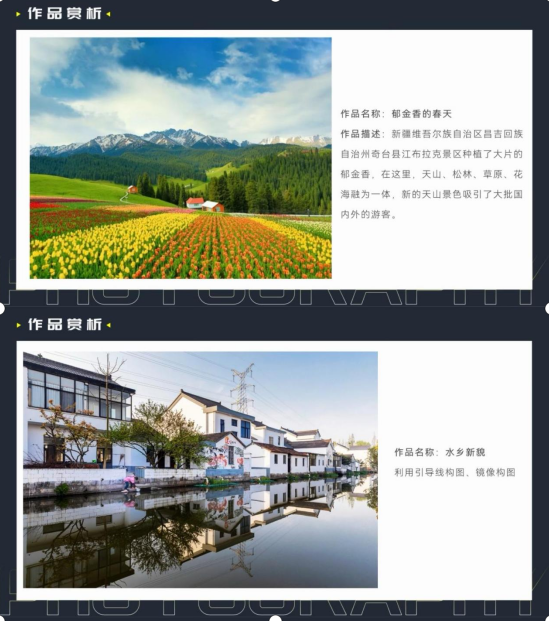在作品赏析环节,同学们一同欣赏了众多优秀的摄影作品。从壮丽的自然风光到细腻的人物特写,从充满故事感的街景到富有创意的抽象作品,每一幅都引发了大家的深入思考和热烈讨论。通过对这些作品的分析,同学们更加直观地感受到了不同构图技巧所带来的视觉冲击和艺术感染力。