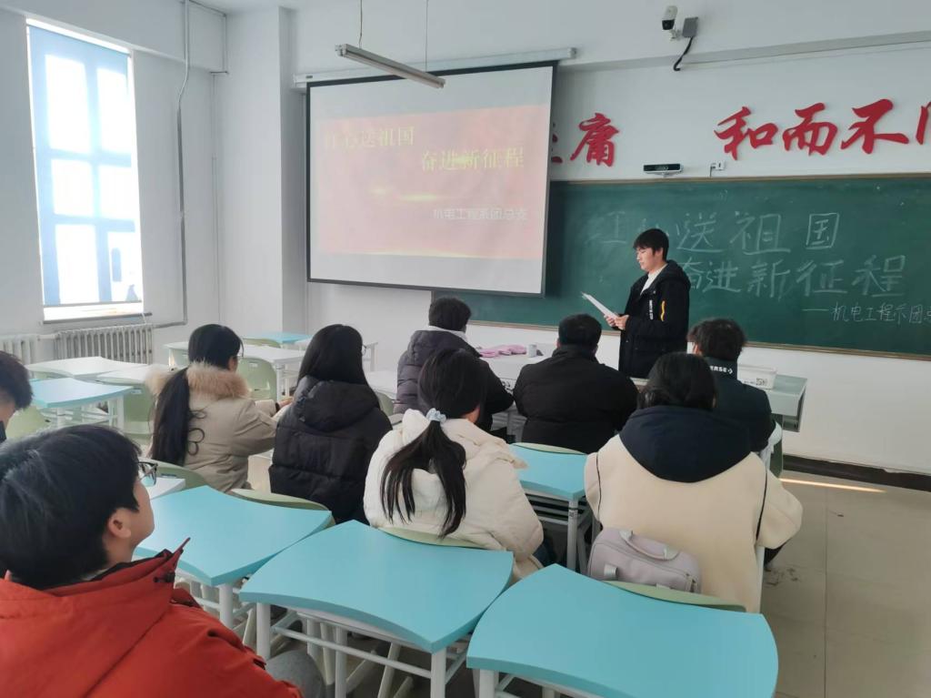 12 月 9 日,为了激励和引导广大团员和青年大力弘扬以爱国主义为核心的伟大民族精神,铭记党的奋斗历史和国家的发展成就,进一步增强广大团员青年的历史责任感和使命感,展现广大青年奋发有为的精神风貌。机电工程系团总支在图书馆 110 举办了红色演讲活动。