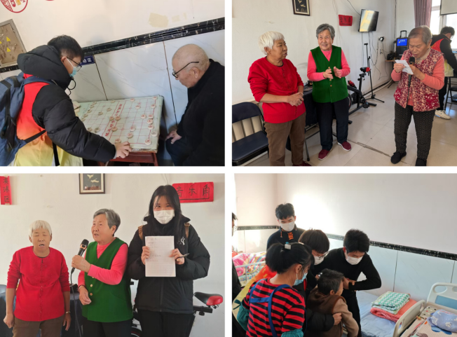 活动过程中,志愿者们热情地与老人们打招呼,并主动搀扶行动不便的老人到活动区域。随后,志愿者们根据老人们的兴趣爱好,分成了几个小组,分别进行了下象棋、唱歌等活动。在下象棋区域,他们时而眉头紧锁,时而喜笑颜开,享受着棋局带来的乐趣。志愿者们耐心地与老人们交流棋艺,让老人们感受到了年轻一代的尊重与陪伴。唱歌区域更是热闹非凡。志愿者们为老人们带来了经典老歌,他们用真挚的歌声表达了对老人们的祝福与敬意。老人们也跟着哼唱起来,现场气氛温馨而融洽。除了下棋、唱歌志愿者们还与老人们进行了深入的交流。他们耐心倾听老人们讲述过去的故事和人生经历,让老人们感受到了被关注和被尊重的温暖。最后,志愿者们也向老人们介绍了自己的学习、生活和未来的规划,让老人们看到了年轻一代的希望与梦想。