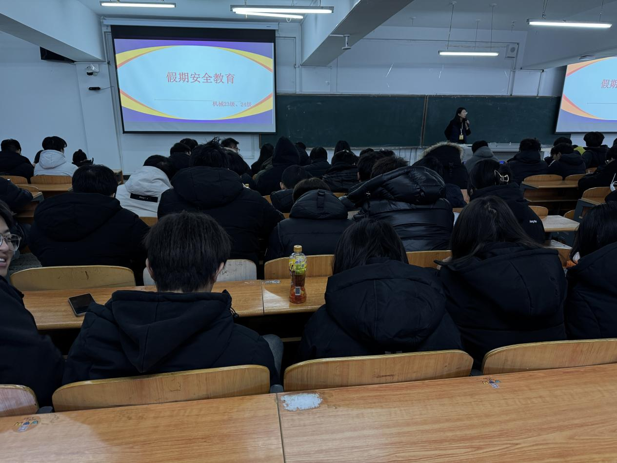 为强化同学们的安全意识,增强自我保护能力,树立正确的安全观念。辅导员肖璐老师于1月4日下午在图书馆101会议室召开假期安全教育大会,机械23、24级全体人员参加。