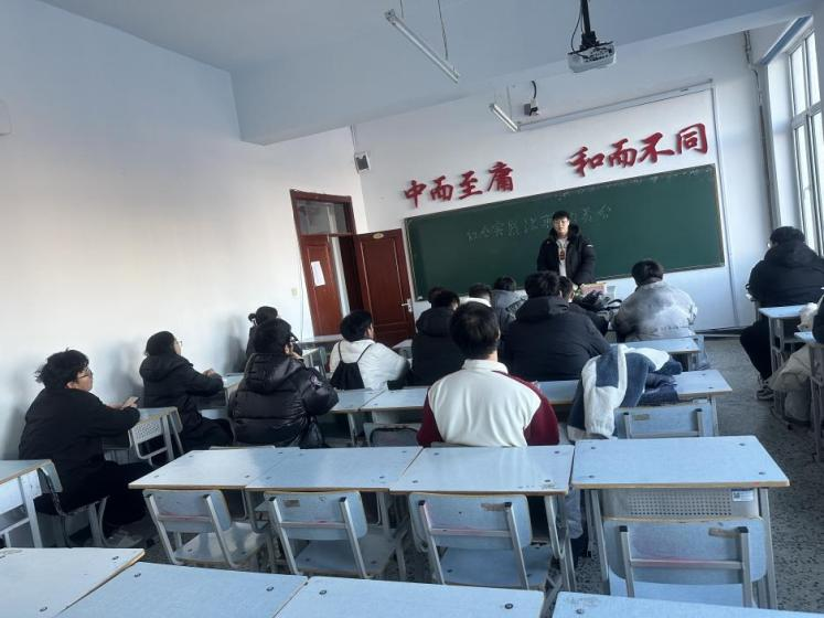 会议开始,郭兴宇老师首先介绍了社会实践学期的目的与意义,强调了社会实践的可以锻炼我们的“三五能力”,其次是的各项任务需要怎样去完成,如何高效的完成社会实践学期的各项任务,最后郭老师重点并强调安全教育问题,目前是冬季,雪天路滑,大家在外出完成任务的同时时刻注意着自身的安全情况。