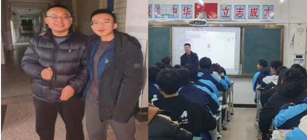 那一刻,我仿佛又回到了那段求知若渴的青葱岁月。刘老师与我亲切地交谈,询问我毕业后的生活与学习情况,鼓励我继续努力拼搏,为社会做出更大的贡献。我也向刘老师汇报了自己近年来的成长与收获,。随后,我将目光转向了高一 5 班的全体同学。看着他们充满朝气与活力的面庞,我仿佛看到了当年的自己。我与同学们分享了自己的高中学习经历,讲述了在学习过程中遇到的困难与挑战,以及如何克服这些难题。同时,我也向他们介绍了大学生活丰富多彩的一面,让他们对大学充满向往,激发他们为实现梦想而努力奋斗的动力。