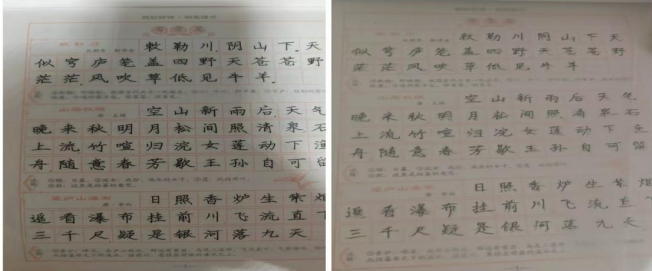 首先,第一项任务就是字帖临摹,每天都要写一篇字帖然后进行打卡。可以通过字帖临摹来锻炼学生的书法能力。
