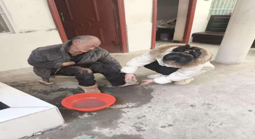 周康如提前与安居苑老年公寓负责人进行沟通,确定访问时间。午饭后抵达养老院,稍作休息后,便迅速投入到与老人互动中。坐在老人身边,耐心倾听他们讲述过去的故事,老人们脸上洋溢着幸福的笑容,沉浸在往昔的回忆里。看到行动不便的老人准备洗脚,积极上前帮忙。看着晒太阳的老人们,便给他们按摩捶背,老人们脸上洋溢着幸福的笑容,而周康如也在此次活动中感受到关爱老人重要性。