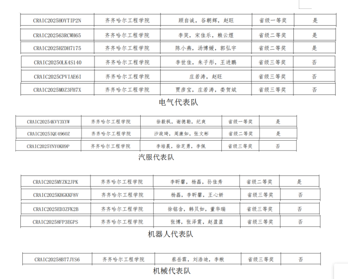 近日,在第二十七届中国机器人及人工智能大赛(黑龙江赛区)选拔赛暨第八届黑龙江省机器人及人工智能大赛传来喜讯,我校16支队伍参赛,共斩获省级一等奖2项、二等奖4项、三等奖8项,奖项覆盖机器人舞蹈、全地形协同机器人、机器人创新、人工智能创新等多个前沿赛项,其中6项参赛作品被推荐参加国赛,为学校再添佳绩。