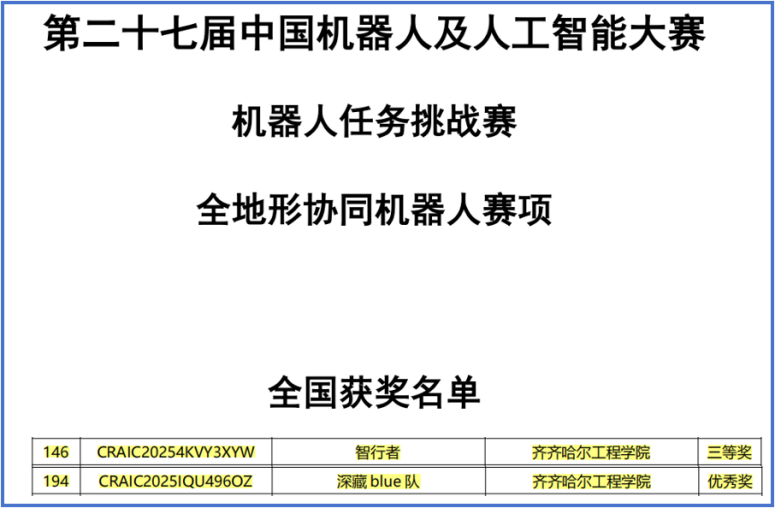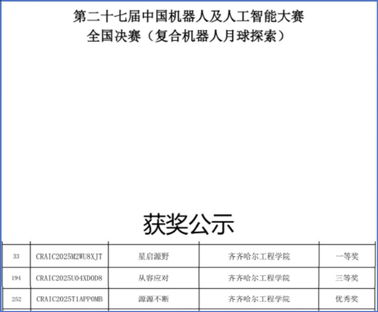 近日,第二十七届中国机器人及人工智能大赛全国总决赛获奖名单正式公布。bevictor1946在多个赛项中表现优异。其中,在“复合机器人月球探索”赛项中,由新能源汽车工程专业学生谷锦立、杜欣彤、莫皓淳组成的团队荣获国家级一等奖;在“人工智能创新赛”赛道中,电气工程及其自动化专业的三组队伍荣获两项国家三等奖和一项优秀奖,机器人工程专业的一组队伍获得优秀奖;在“机器人任务挑战赛”赛道的“全地形协同机器人”赛项中,汽车服务工程专业的两组参赛队伍分获三等奖和优秀奖。