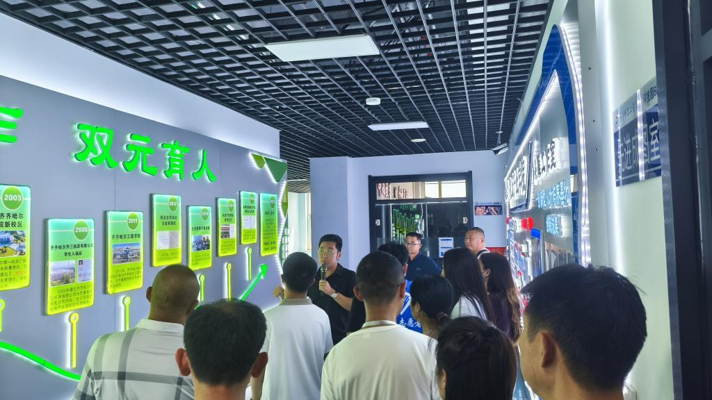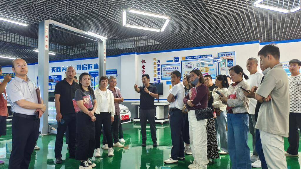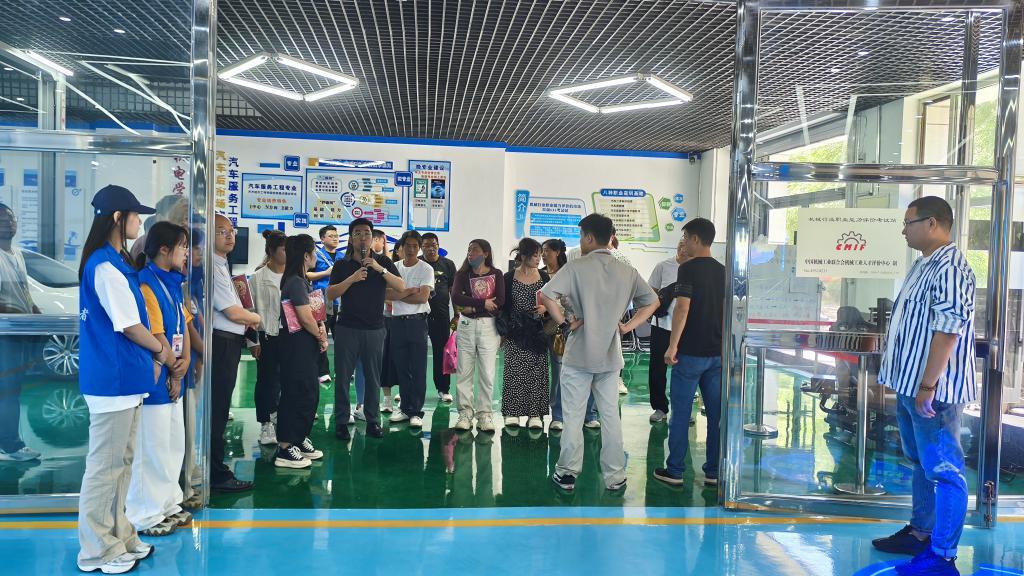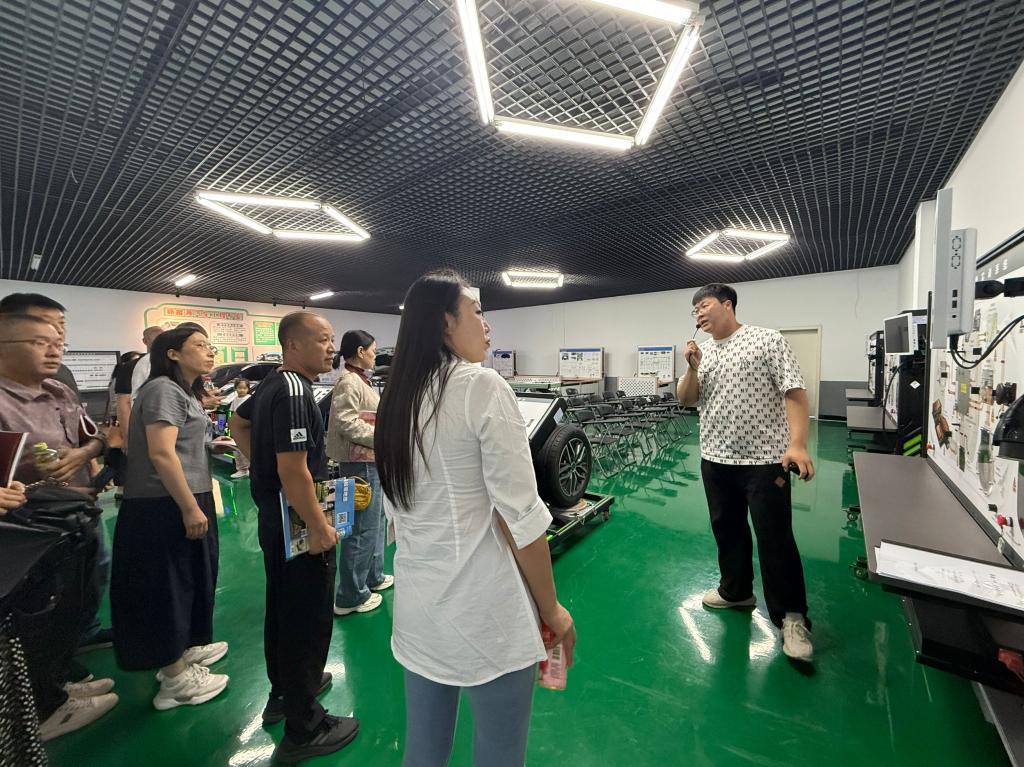 新生家长来到新能源实训中心和汽车大楼各专业实验室,敖林喆和实验室老师郭兴宇分别为家长们讲解了专业实训教学场所和专业教学内容。展示了学生参加课程实训、实验和专业创新技术应用等应用发展成果。