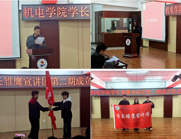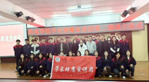 活动伊始,王虹详细介绍学长雏鹰宣讲团成员,对全体宣讲团成员做出期许。随后辅导员董晓亮为宣讲团发展与学长们的成长送上殷切寄语,以志存高远,勤学笃行,修身立德三方面对全体宣讲团成员做出教导与祝愿。在授旗仪式中,宣讲团2023级团长汽服231沙政琦向2024级团长汽服241李峰松授予团旗,旗帜的传递象征着机电学长团使命与担当的延续。