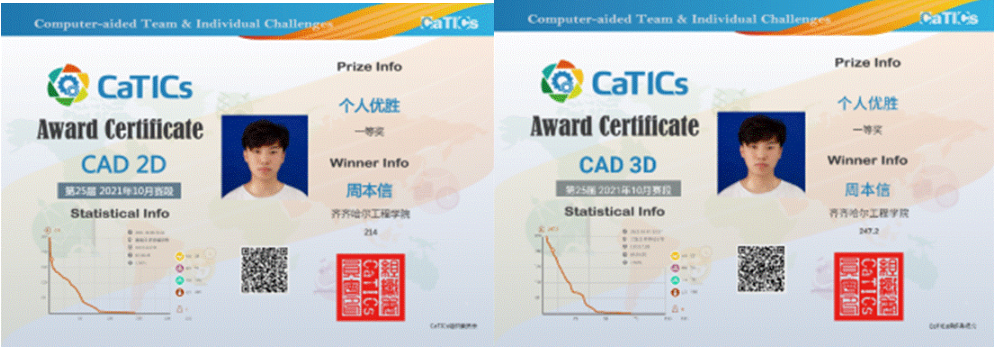 周本信:男,汉族,机电工程系机械设计制造及其自动化专业2022届毕业生。大学期间多次获得奖学金,多门专业课获得高分,其中高等数学、线性代数获得满分,通过CET4等。在技能类比赛中,获得第24届CATICS 2D竞赛团队一等奖、第24届CATICS 3D竞赛团队一等奖、第25届CATICS 2D竞赛个人一等奖、第25届CATICS 3D竞赛个人一等奖。毕业后通过校招进入世界500强大型央企,即中国电子系统工程第三建设有限公司。