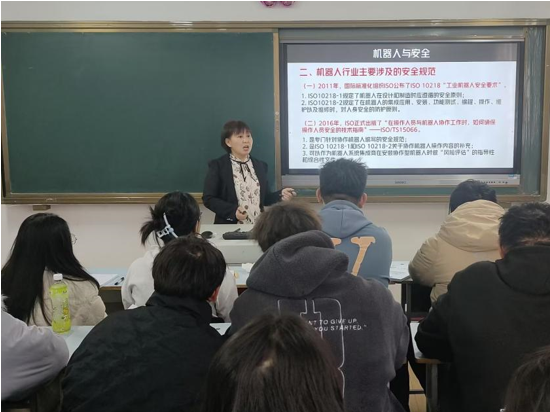 为了提升专业教师课程思政教学能力,机器人工程专业于11月22日开展了课程思政教学示范活动。杨翠丽老师做了“规则意识——机器人与安全”的课程思政教学示范,专业全体教师进行了现场观摩。