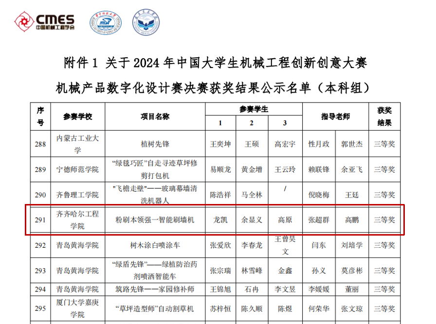 【喜报】我校学生在2024年中国大学生机械工程创新创意大赛机械产品数字化设计赛决赛中斩获佳绩