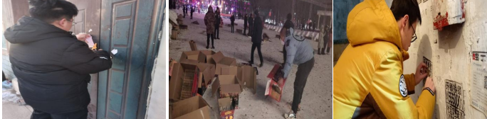 在第五周我小组三名成员李响、孙海超、王文泽开展了志愿服务活动。小组成员孙海超、王文泽选择的志愿服务活动是清理街边及楼道内的小广告。小组成员李响选择的是清理街边烟火垃圾。