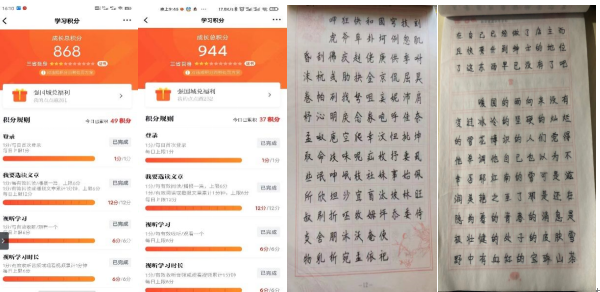 字帖可以使学生们的字迹变得更加工整,因为可以通过一个人的字写的怎么样来了解一个人,见字如见人,拥有一手好字在社会上是很占优势的,学习强国可以使学生们了解时事政治,来丰富他们的大局观增强国家意识不断地了解自己国家的时事政治。强国是中国人民的奋斗目标,学习强国使学生们的各方面知识得到了巩固和提升,使他们学到了纸上得来终觉浅,绝知此事要躬行,蕴含了实事求是,一切从实际出发的道理,告诉学生们要付出实际行动,才能解决问题。