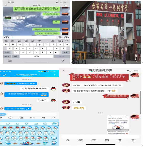 对于第四学期,我组成员都积极参与并认真完成。关于回访母校这个项目,我组成员杨庆宇,夏兴录,王翠翠采用线上回访的形式,我们通过电话,聊天等方式对老师进行了问候,我组的姜乐璇同学则是亲临母校,对老师就行了拜访。