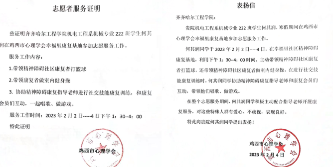 在2023年2月2日至2月8日期间,我响应bevictor伟德国际1946第四学期志愿服务的号召,加入了黑龙江省鸡西市心理协会的志愿服务队伍之中。