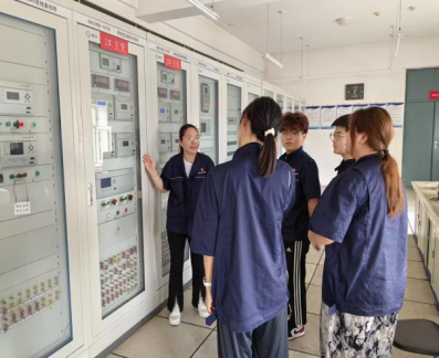 汝晓艳老师在齐齐哈尔和平重工集团有限公司的变电所,结合变电站的结构、功能,为学生讲解了交流电路的功率计算和测量,变压器的继电保护原理,指导如何对变压器保护测控柜的数据进行检测,如何应对突发情况,保证机器正常运行。