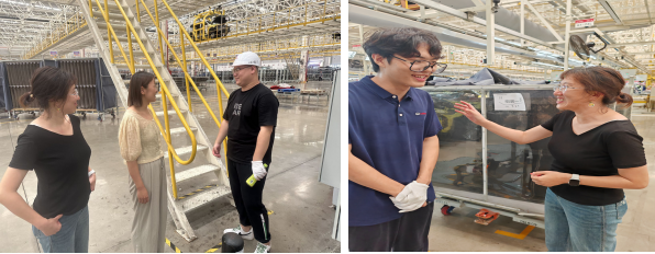 首先,在检查和指导过程中,三位老师一行先后来到总装车间、焊装车间、涂装车间、学生宿舍实地检查学生的学习态度的学习情况,贾文静、孙皓两位老师就上学期学过的专业课程的理论知识是否结合实践运用到实际中去。