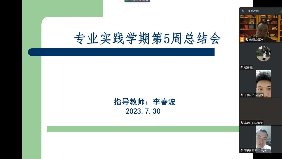 2023年7月30日李春波老师在线上召开实践学期第五周总结会。所指导的车辆工程专业学生参会。