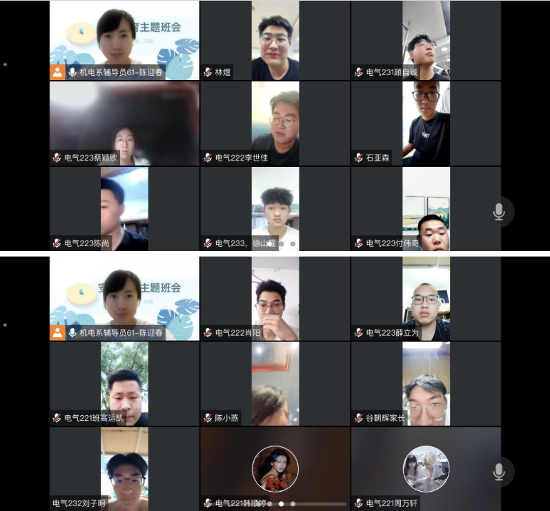 7月12日电气专业辅导员老师陈迎春在线上召开电气22级23级专业实践学期安全教育会,旨在提高学生们在实践学期中的安全意识和自我保护能力。