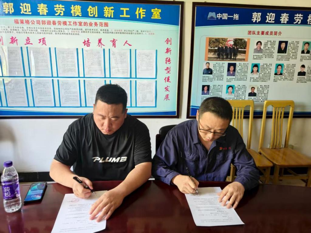签约仪式于中国一拖郭迎春劳模创新工作室举行,李经理协同学院代表完成协议签署。根据协议,福莱格公司将为学院提供实践场地、设备及专业指导,学院则有序组织学生参与实践,强化安全教育与日常管理。双方还将共建实践活动方案,在课程资料共享、实践指导协同上深化合作,构建 “理论+实践”育人闭环。